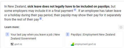 Q: I have found this on NZ employment site. Please can you confirm that sick leave legally does not have to be on pay slips. Thank you for your help.